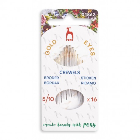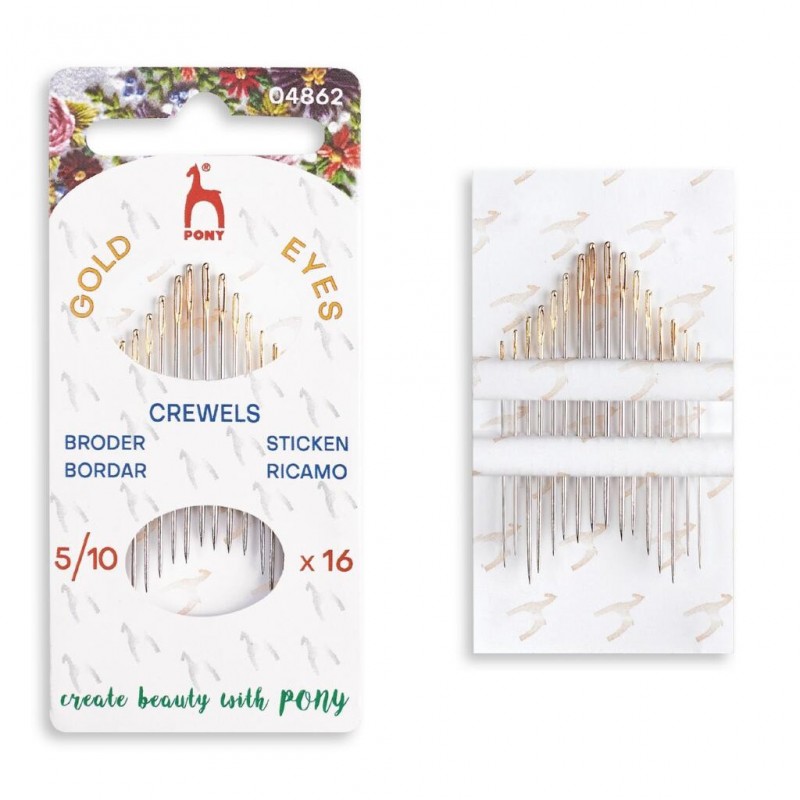 Иглы для ручной вышивки Pony (Crewels) средней длины, имеют острый кончик и широкое ушко. Используются для вышивания разными техниками.