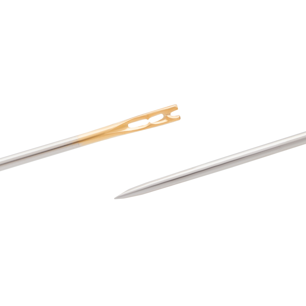 Вместо традиционного продевания через ушко, нить в этих иглах пропускается через специальную прорезь в верхней части. Такая система позволяет легко заправлять нить даже на ощупь.