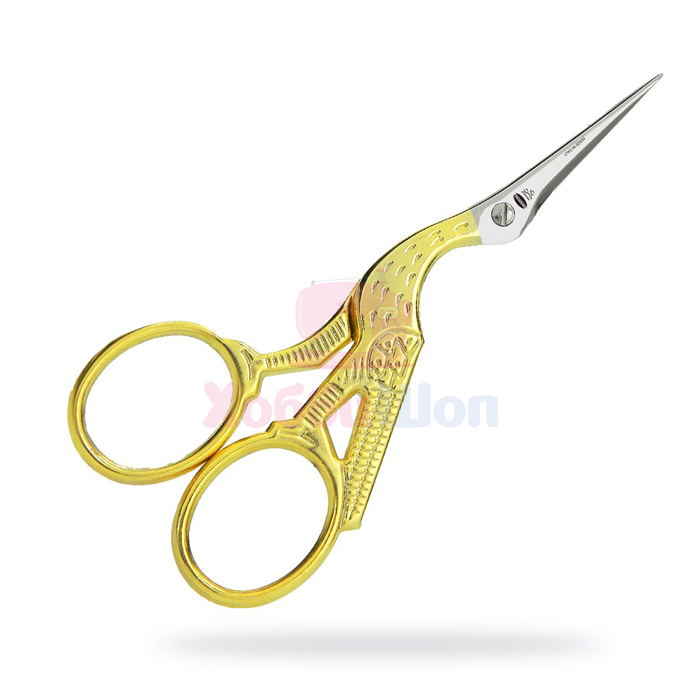 Ножницы вышивальные «Аист» с золотыми ручками OMNIA Line изготовлены из нержавеющей стали AISI 420, подходит для домашнего и профессионального использования.