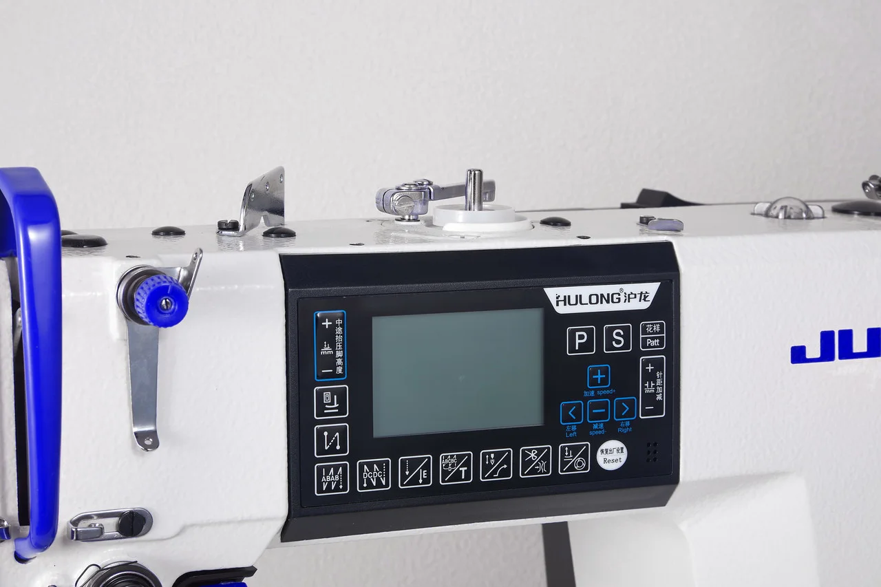 Прямострочная одноигольная модель с нижней подачей материала рассчитана на лёгкие и средние ткани. В головку машины интегрирован сервопривод. Предусмотрены автоматические режимы: закрепка, обрезка нити, настройка параметров строчки, а также встроенный механизм подъёма прижимной лапки. Дисплей нового типа, удобный для настройки и программирования, органично вмонтирован в корпус.